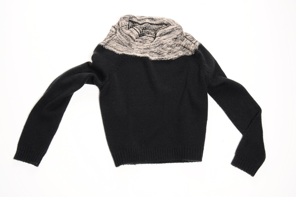 The sweater is a cashmere, wool, acrylic and gold lurex blend.